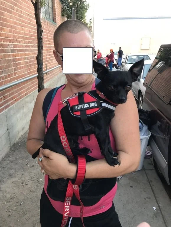 Itty Bitty is a sweet little service dog, currently living with his human parents in their van. Itty Bitty’s owner did not have the funds to obtain his Service Dog ID harness and leash, and so Hand & Paw worked with them to provide these supplies along with a bed, water bowl and food.